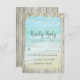 Incluya estas tarjetas RSVP en su suite de invitaciones a bodas de mariscos rústicos. Una escena de playa con olas de azul acuático estrellándose contra la orilla con spray blanco, enmarcada con madera rústica templada, y luces de cuerda decoran la parte superior.