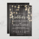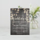 Esta rústica plantilla de invitación a la boda inspirada en el boho presenta luces de cuerda con un fondo rústico de madera marrón. Todos los estilos de texto, colores, tamaños se pueden modificar para adaptarlos a sus necesidades.