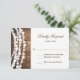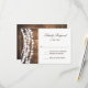 Tarjetas RSVP de boda rústica de campo con luces brillantes en el fondo de un granero de madera. Las tarjetas de respuesta son perfectas para una boda rústica o un boda de granero. Elementos del juego de Bodas coincidentes:
