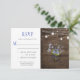 RSVPs rusticas con frascos de caramelo de albañil iluminan un fondo de madera de granero con un dulce paquete de olvídeme azul atado con una cinta azul. Si quieres este diseño en un producto similar, o necesitas ayuda, por favor contacta conmigo a través de mi tienda. Hay una invitación coincidente disponible.