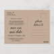 Esta es la moderna y minimalista tarjeta Kraft rústica, con diseño temático, en fuente Black, Tarjeta de invitación de boda reprogramada (pospuesta / aplazamiento) postal. Es la forma perfecta y elegante de hacer el anuncio de reprogramación a sus amigos y familiares.