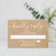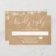 Una sencilla y elegante tarjeta RSVP con sus detalles en la tipografía de moda sobre un fondo rústico kraft, luces de cuerda y tarros de albañil al revés. Diseñado por Thisisnotme©