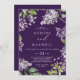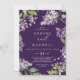 Esta rústica invitación a una boda casual en color lila púrpura es perfecta para un boda de primavera o verano. El romántico y elegante diseño floral presenta flores silvestres de lila morada con acuarelas y un ambiente rústico y acogedor.
