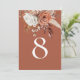 Rústico Número de la Mesa Terracotta de Florals de Otoño. Las hermosas flores y hierbas otoñales en tonos otoñales de crema de terracota y browns están en la cima. Personalice fácilmente el número de tabla. El mismo diseño está del otro lado.