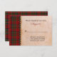 Colorida tarjeta de respuesta boda rústica de aspecto antiguo hecha en el patrón de manta de lona de color rojo, verde, azul, amarillo y blanco Royal Stewart. Los gráficos de papel de aspecto antiguo cubren dos tercios de la parte delantera, con un borde de zigzag decorativo, a la izquierda, y el trenzado, en el lado izquierdo de la tarjeta y en la parte posterior. El texto negro y rojo está listo para personalizar tu día especial. Productos a juego disponibles.