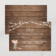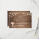 Rustic String Lights Peony Wedding RSVP card featuring a warm wood plank background with glowing string lights and a pink peony bouquet arranged in a mason jar. The soft script heading paired with clean serif text creates a balanced layout that feels inviting and easy to complete. Ideal for barn weddings, outdoor celebrations, country venues, and romantic rustic themes, this design includes space for guest names, attendance confirmation, and meal selections. Easily personalize with your details.