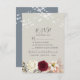 Elegante, boquiabierto, rústico tarjeta RSVP de boda floral con hermosas flores de color burdeos, luces de cuerda y escritura moderna de caligrafía.