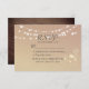 Elegante tarjeta RSVP rústica para un boda de otoño o granero, con luces falsas de cuerdas, encaje floral de oro suave y escritura moderna de caligrafía. Un diseño cálido y romántico perfecto para recepciones de otoño o de noche. Personalice con opciones de comida para huéspedes y fecha límite de respuesta. Coincide con la Rustic Wood String Lights Wedding Invitation Suite.