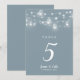 Affordable printed wedding table number cards with a simple DIY template for customization. This rustic chic design features strands of glowing string lights and mason jars on a dusty blue background. Personalize each table number that you need and add each to your cart individually (note: adding a bulk number of cards to your cart will result in printing with all the same number). Use the design tools to choose any fonts and colors you like or upload your own photos to make a one of a kind design for your wedding table decor!