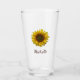Boho floral personalized Sunflower shot glass, with customizable script typography. Enjoy this botanical accessory item for yourself or as a gift for someone special.