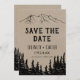 Esta montaña rústica de madera, salvo la tarjeta de fecha, es perfecta para un boda de bosques. El diseño, inspirado en la naturaleza, presenta la silueta de un bosque de pinos y montañas sobre un falso papel de kraft. Nota: Esto no está impreso en papel kraft real. Es un gráfico de alta calidad hecho para parecer un papel kraft.