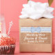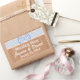 El boda pequeño pegatina de la marca de vino de campo dulce hecho con un aspecto de burrega. Gráficos de encaje blanco y una cinta de gingham de color azul claro y blanco y se estiran a lo largo de la parte superior. Personaliza todo el texto de la recepción de tu boda.