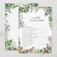 Cree un regocijo alentador para la futura madre con este juego Woodland Wishes for Baby Game, que incluye adorables animales de madera color agua, vegetación eucalipto y tipografía de escritura caprichosa. Los clientes pueden completar sus sentidos deseos y consejos para el bebé, lo que hace de esto una adición preciosa y sentimental a cualquier ducha de bebé. Perfecto para duchas infantiles modernas, boho, rústicas o neutrales en género, esta elegante actividad se adapta a las celebraciones "Es un Chica", duchas con temática de bosques y fiestas inspirados en el bosque. Una forma maravillosa de captar mensajes especiales de sus seres queridos mientras se le agrega un toque elegante a la decoración y el papel de su ducha de bebé.