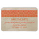 Sencillo y elegante Rústico Lace Save the Date Premium Flexi Magnet con un fondo de papel texturizado vintage y un borde de encaje dulce y delgado en naranja. Fácil de personalizar, simplemente añada los detalles de su boda. Haga clic en "Personalizar" para encontrar más opciones de personalización.
