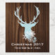 Rústicas etiquetas de vino de tamaño completo, hechas con un aspecto de grano de madera oscura. Gráficos de una cabeza de ciervo azul bonito, con copos de nieve, decoran el centro de la etiqueta. Personalice el texto blanco, en la parte inferior de la etiqueta, para su regalo de vacaciones o fiesta de Navidades.