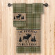 Un bonito conjunto de toallas de baño de temática rústica, con su nombre familiar y cabaña, lodge, cabaña u otro texto deseado y su fecha establecida. Este diseño único y a la medida cuenta con una silueta de alce de toro y pinos en una estampada de estilo burpón, acentuada por un hermoso pasto de campo francés en tonos suaves de hierba y verde salvia. Para ver más diseños como este, siéntase libre de visitar mi tienda aquí en "Zazzle.com/Rustic_Charm". ¡Gracias.