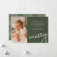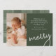 La moderna carta rústica de un Navidad fotográfico presenta un elegante guión alegre en blanco y tonos verdes festivos con un patrón de manchas en la parte posterior de la tarjeta. Personalice la tarjeta de felicitación clásica con su foto familiar personalizado!