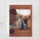 Anuncie su gran día con esta floral de terracota salve la tarjeta de fecha con su foto favorita. El moderno diseño rústico combina los ricos tonos de terracota con los románticos acentos florales para que el ambiente sea atemporal. Personalice sus datos y explore nuestra colección para encontrar artículos de papelería boda.