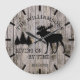 Un diseño rústico, único, personalizado y único, presenta un fondo falso de madera con pinos, un alce y las palabras "LOS WILLIAMSONS VIVIENDO EN LA MONTAÑA TIME EST. 20XX" en tipografía negra. Personalice este reloj agregando su propia información personal. Hace un gran regalo de boda, aniversario o de cambio de hogar. Haga clic en "personalizar esta plantilla" para cambiar los nombres y las fuentes para crear un diseño único de un tipo. Qué lindo accesorio para tu sala de estar, dormitorio o habitación familiar. Si necesitas ayuda con la personalización, envíame un correo electrónico a ybnormalone @gmail.com. Gracias por detenerse en www.zazzle.com/WhisperingPines. ©Karen HallA rústico