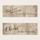 Estos boletos de bebida fueron diseñados para coincidir con otros artículos en una creciente suite de bodas y eventos que cuenta con rústica madera marrón clara y brillantes cuerdas blancas de luces. En un sitio lees "Este está sobre nosotros" y "Bueno para una bebida adulta" y en el otro lado está "Saludos" y un lugar de plantilla para los nombres de la pareja. El texto no editable se representa en un tipo de letra de guión moderno hermoso. Otro texto aparece en un tipo versátil de serif que puede cambiarse si lo desea. Todas las palabras se presentan en color negro. Estos elementos de diseño también se configuraron en tarjetas más grandes; asegúrese de comparar sus opciones si está interesado en ver versiones alternativas. Por favor, no dudes en contactarme si tienes solicitudes especiales o necesitas otros artículos. También estoy contento de ayudar con la personalización de estas tarjetas si lo necesitas. // 19 pmdt047/// Diseñado por Melody Watson para boletos de Papel Muserie // bar, tix de bebida, cupones de hora de coctel, este está sobre nosotros, vamos a comprarle una bebida, bebidas adultas, cada boleto es bueno para una bebida alcohólica