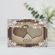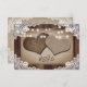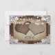 Románticas cartas RSVP caseras rústicas con opciones gastronómicas inspiradas en madera rústica, arpillera y encaje. Personaliza fácilmente estas vintage cartas rústicas de respuesta de bodas con corazones burlap en una torrente angustiada y fondo rústico de madera adornado con luces de cuerda y encaje blanco. Fondo de arpillera perturbado decorado con encaje floral blanco en la parte posterior.