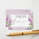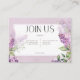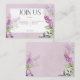 Aumente su invitación boda con nuestro exquisito diseño de tarjeta de recepción de bodas con susurros de lilac. Un lienzo de suave y angustiado morado prepara el escenario para el romance, mientras que el cuadro de texto blanco, adornado con un marco delgado y suave de color violeta, añade un elemento de refinada sencillez. El encanto continúa con los delicados pulverizadores de lilas acuarelas y follaje verde suave de salvia que enmarcan con gracia los bordes y el dorso del diseño, añadiendo un toque de belleza natural a su celebración. Este diseño combina perfectamente la elegancia atemporal con el estilo contemporáneo. Haz que tu boda sea inolvidable con este fascinante diseño que capta la esencia del amor y la sofisticación. Esta tarjeta es parte de la suite Boda Rústica Romántica Purple & Sage Lilacs creada por Simply Farmhouse Press.
