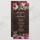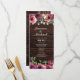 Madera rústica con lámparas de cuerda y un menú de la recepción de bodas floridas color agua burdeos. Excelente para bodas de campo o granero. Contáctenos para obtener ayuda sobre la personalización o la correspondencia de productos.