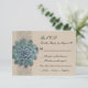 Esta elegante tarjeta de respuesta a la boda presenta un fondo rústico y una gran imagen de una suculenta planta a la izquierda. Un borde de encaje añade un aspecto de moda con un toque de época. La información está escrita con letras elegantes. Este diseño es ideal para un boda con una temática botánica, rústica o al aire libre. Es perfecto para los amantes de la naturaleza con un gusto sofisticado.