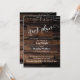Si eres uno de los muchos que ha necesitado cambiar la fecha de su próxima boda, esta tarjeta podría ser justo la que necesitas. El fondo estaba cubierto primero con una foto que representa madera oscura marrón áspera con líneas horizontales. La parte superior estaba cubierta con un gráfico que sugiere hilos de luces brillantes centelleantes. Tus detalles aparecen en blanco. Para complementar la tipografía sans-serif utilizada para tu texto editable, he agregado palabras clave y de acento "nuevo plan" y "y", así como "amor" en la parte posterior, utilizando una fuente de caligrafía moderna y bonita. Se proporcionaron campos de plantilla para tus datos personales; cambia la redacción según sea necesario. Hay otras versiones que presentan diferentes palabras de encabezado, si deseas ver opciones similares.