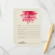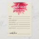 Invite a sus huéspedes a compartir consejos y pensamientos con nuestras modernas y elegantes tarjetas de consejo para duchas de novias. Este diseño presenta un ilustracion acuarela de una flor silvestre rosa rojizo, y una combinación de escritura caligráfica y sans serif con un fondo blanco cremoso. Personaliza con tus propios detalles o texto personalizado.