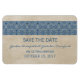 Sencillo y elegante Rústico Lace Save the Date Premium Flexi Magnet con un fondo de papel texturizado vintage y un borde de encaje dulce y delgado en azul oscuro. Fácil de personalizar, simplemente añada los detalles de su boda. Haga clic en "Personalizar" para encontrar más opciones de personalización.
