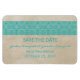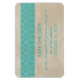 Sencillo y elegante Rústico Lace Save the Date Premium Flexi Magnet con un fondo de papel texturizado vintage y un borde de encaje dulce y delgado en turquesa. Fácil de personalizar, simplemente añada los detalles de su boda. Haga clic en "Personalizar" para encontrar más opciones de personalización.