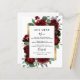 El diseño se caracteriza por la peonía acuática y los elementos florales rosas en tonos rojos y burdeos sobre la vegetación botánica del eucalipto. Template también incluye una caja de color oro impresa para un diseño elegante agregado. La tipografía muestra un diseño moderno con texto negro. Vea el vínculo de colección en esta página para encontrar productos coincidentes dentro del conjunto de bodas.