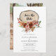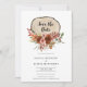 Invitación/Invitación Rústica Salven la Cita Fall Floral Wood Slice - Qué encantadora manera de anunciar su día especial a su familia y amigos. El Rustic Save the Date Fall Floral Wood Slice Invitation presenta una sección rústica de madera adornada con flores en una preciosa paleta de colores otoñales, complementada con vegetación natural y en la parte posterior de la invitación se puede ver una bonita foto. Nuestra plantilla de guardar la fecha hace que sea tan fácil para usted hacer que su guardar la fecha sea única. La invitación se muestra con una espalda verde salada, sin embargo, puede cambiarla fácilmente a su tema de color boda. Guardar la fecha también está disponible sin foto y forma parte de una colección. Diseñado por la diseñadora Boda de Beverly Bainbridge Magnolia & Thistle Design Co.