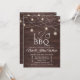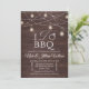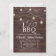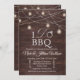 Esta rústica invitación de I Do BBQ es perfecta para una barbacoa en el patio trasero. Cuenta con luces de cuerda y madera. Es ideal para una ducha informal.