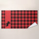 Una rústica toalla de mango de búfalo de alce con estampado rojo y negro y siluetas de alce. Perfecto para la decoración del cuarto de baño o la decoración rústica de la cabaña.