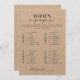 Crea un momento divertidísimo en tu ducha de novia con esta ducha rústica con temática de novia Qué hay en tu juego de bolso. El juego se trata de los objetos que encuentras en tu bolso. Todo lo que necesitas son cartas de juego imprimibles, algunos premios y tiempo para divertirte con tus chicas. Con su moderna tipografía y su fondo de papel kraft, es la combinación perfecta para jugar en una ducha de bodas de temática rústica.