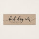 Esta rústica tarjeta mini kraft con las palabras "mejor día de la historia" en escritura gris oscura hace una gran etiqueta de favores de boda. Es fácil de personalizar; basta con reemplazar el texto del marcador de posición para añadir su propia información. Para obtener más opciones, como cambiar el tipo de letra, el tamaño del texto o el espaciado entre letras, haga clic en el botón "Personalizar". *Tenga en cuenta que la marca de agua Zazzle que aparece en la vista previa del zoom NO aparecerá en el producto impreso final. © Rosewood y Citrus