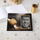 Funeral rústico de los hombres vaqueros y libro de invitados conmemorativo con gorra y cuerda de vaquero sobre un fondo rústico de madera con un marco rústico con una pintura de cuerda. Este libro de visitas funerarias rústico se personaliza fácilmente añadiendo la foto y el texto de su elección.