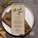 Añada un toque personal y reflexivo a la celebración de su boda con este moderno y rústico fiesta de cabaña con luces de cuerda marrón kraft ambiente de la cena carta de agradecimiento. Diseñado para estar situado en el asiento de cada huésped, este elegante papel de boda le ayuda a expresar su gratitud y a crear un ambiente cálido y acogedor. Con su escritura rústica dibujada a mano, es perfecto para realzar la decoración de su cena boda, recepción o ensayo. Personalizar con sus nombres, y / o un mensaje especial para hacerlo verdaderamente suyo. Una bonita nota para que los huéspedes recuerden su día, esta tarjeta es un detalle elegante que complementa las celebraciones rústicas de la cabaña.