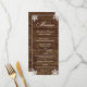 Esta rústica carta de menú de copos de nieve de invierno de Boda de Invierno presenta un fondo de madera de pino con copos de nieve blancos y frescos que bordean las esquinas. El diseño es perfecto para una boda de invierno de temática rústica o rural. Añada fácilmente sus propios detalles bodas para personalizar esta carta rústica de menú nupcial.