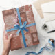 Flores y hojas marrones rústicos Naranjas en burlap - Este moderno papel de envoltura presenta un patrón cuadrado, cada cuadrado con flores y hojas geométricas y minimalistas. El diseño, limpio y contemporáneo, está decorado con un bonito fondo de lino de burún que le da un toque rústico sutil. Ya sea que esté envolviendo regalos para la familia, amigos o colegas, este papel de envoltura hará que sus regalos se vean extra especiales.