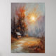 Esta poster de arte paisajístico generada por IA capta la serena belleza del otoño en el campo. Una cabaña rústica se esconde entre los grandes árboles, con una mezcla de naranjas cálidos, rojos y marrones que reflejan los ricos tonos de otoño. El luminoso sol ilumina un entorno tranquilo y dorado, creando un ambiente tranquilo y nostálgico. La textura inspirada en la pincelada le da a esta pieza un toque impresionista, perfecto para aquellos que aprecian la decoración rústica o de inspiración natural. Esta obra de arte evoca el encanto tranquilo de una mañana de otoño, ideal para acogedores espacios de estar, cabinas o cualquier habitación que necesite un toque de calidez y naturaleza. El fondo nebuloso da profundidad a la escena, mientras que la iluminación tenue resalta la belleza natural de la temporada. Es un paisaje de caída atemporal que trae la esencia tranquilizadora del exterior a tu casa.