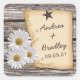 Flor de margarita blanca rústica de campo y occidente, boda personalizada para salvar a los pegatinas de cita o sellos para sobres. Estos son grandes pegatinas para usar como sobres sellos o etiquetas de favores para tu boda de primavera, verano o otoño. Se pueden comprar en dos tamaños. Estos son grandes stickers de bodas si tienes un tema rústico, occidental, de camping (glamping), al aire libre, de granja, granero o de campo. Daisies blancos emparejados con fondo de madera y papel de pergamino de madera templada.