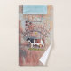 Casa de campo de vaca con toallas de baño de bienvenida. Rústico marrón rústico estilo occidental textura granja de animales diseño decoración de hogar. Derechos de imagen de Marg Seregelyi Photography.