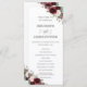 Diseñado para coordinarse con nuestra colección de bodas rusticos de Rubor, este elegante programa de bodas cuenta con una hermosa acuarela de color burdeos, rosas rosas rosas rosas de color rosa, peonías, existencias y disposición de vegetación. Personalízalo con los detalles de su boda fácil y rápidamente, simplemente pulse el botón personalizar para reorganizar y formatear el estilo y la ubicación del texto. Doble cara. El estudio del gato feliz