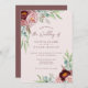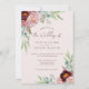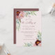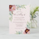 Un elegante diseño acuático con un gran peón y rosas en tonos de rosa polvoriento con un hermoso eucalipto verde sobre un fondo rosa claro. La parte trasera de la tarjeta está cubierta por una sombra oscura de color rosa polvoriento, con una pequeña disposición floral en el centro. Esta bonita invitación forma parte de una suite boda que puede ser totalmente personalizada.