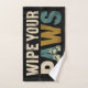 Esta encantadora y rústica imagen presenta un cartel de estilo vintage con el mensaje "WIPE YOU PAWS". El fondo tiene una textura de madera oscura angustiada y templada. La letra está en una mezcla de letras en negrita y en mayúsculas, con "WIPE TU" en un color de color blanco roto y la palabra "PAWS" en una mezcla de verde azulado y oro, con sutiles gráficos de la huella de pata incrustados en las letras. Este gráfico presenta un ambiente cálido y agradable para los mascotas y es perfecto para una decoración casera, o para cualquier diseño que abarque una estética acogedora y de moda de campo.