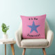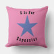 Haz que alguien se sienta especial con esta almohada de tiro para ponerla en su habitación. Una estrella azul claro de cinco puntas con texto de personalizable que dice "S es para superestrella" en un fondo rosado. El reverso de la almohada de tiro tiene una estrella más pequeña que se ha convertido en un patrón de repetición que cubre toda la zona.