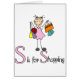 Tarjeta de figura de palo de personalizable con la imagen de palo de chica de la compra y el texto que dice "S es para comprar".